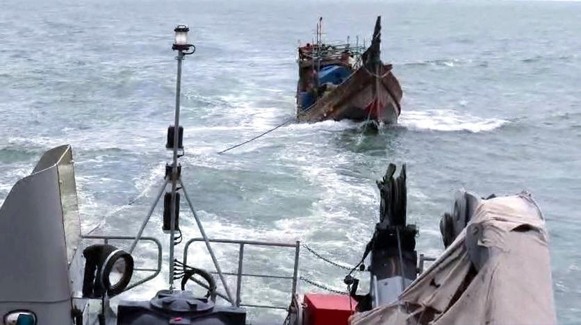 The trawler was found floating in the area adjacent to the International Maritime Boundary Line (Western IMBL) about 17 nautical miles away from the Mongla Fairway Buoy by the patrolling warship ‘Banouja Bishkhali’. At that time, the Navy warship detected the trawler as ‘engine-failed and in danger’ through radar and quickly reached the spot. When the warship reached the fishing trawler, the fishermen said that they had been floating in the deep sea for two consecutive days due to the engine failure and the fishermen were living in extreme hardship due to lack of food and water. Navy members immediately rescued the trawler and the fishermen and provided them with necessary food, clean water and first aid. All 12 fishermen on the trawler are currently healthy. It is learned that the accident-hit trawler had gone to sea on August 15, 2025 for fishing and due to a mechanical fault, the engine failed and continued to float in the deep sea. Despite heavy waves and hostile weather, the Navy warship towed the trawler and the rescued fishermen to safety and handed them over to ‘BCGS Atrai’ for further action.